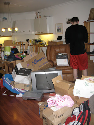 Packing up the old apartment at Framnesvegur...extra credit points to those who can spot the baby girl (hint, bald, pink, window....)